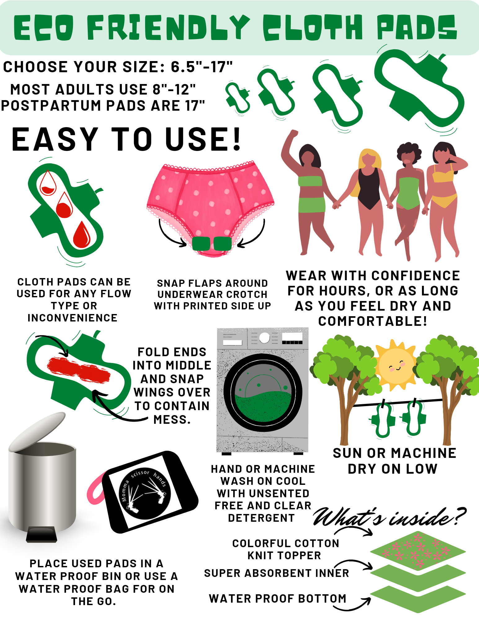 Cloth pads reduce irritation, chafing and waste.